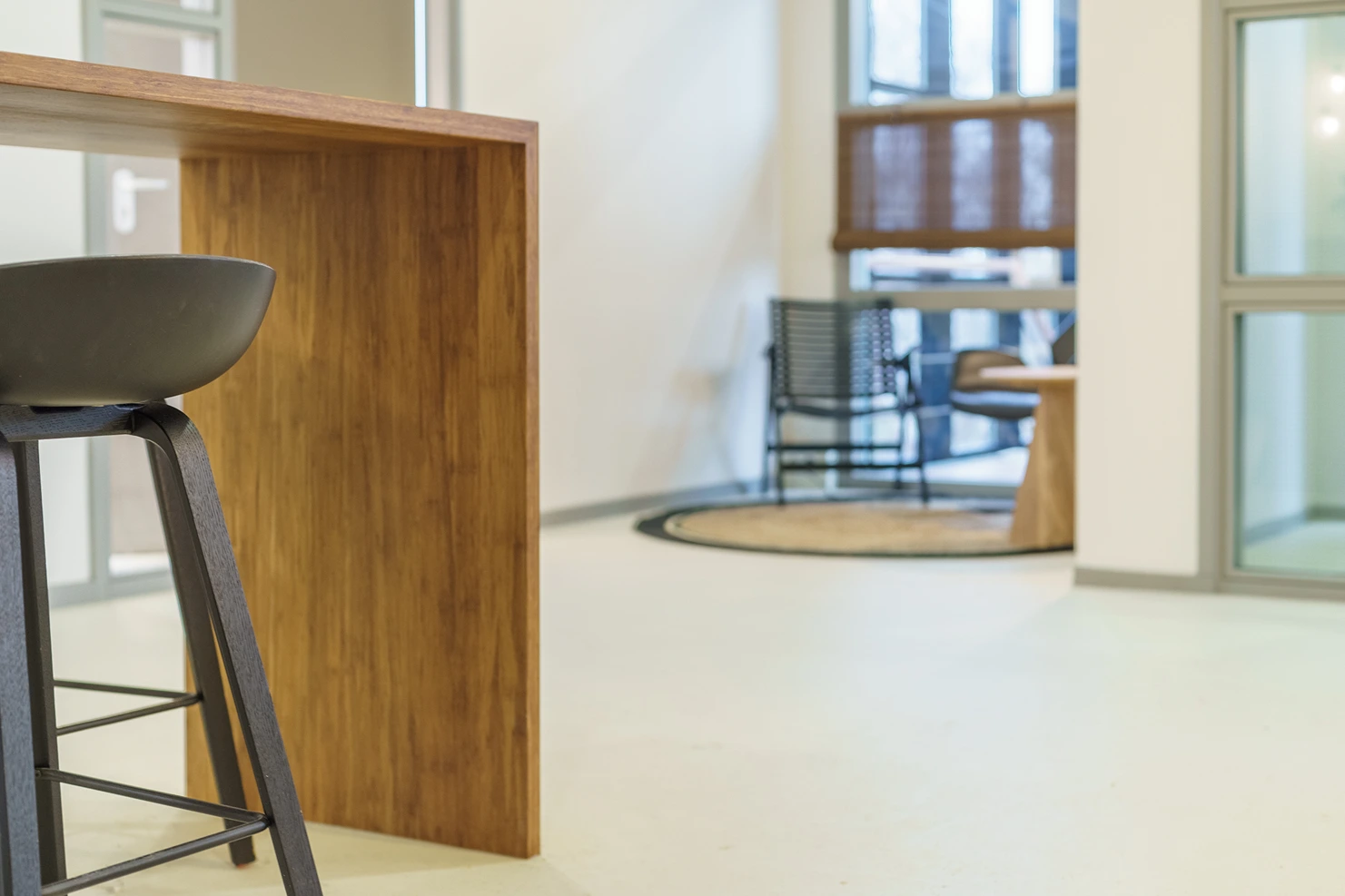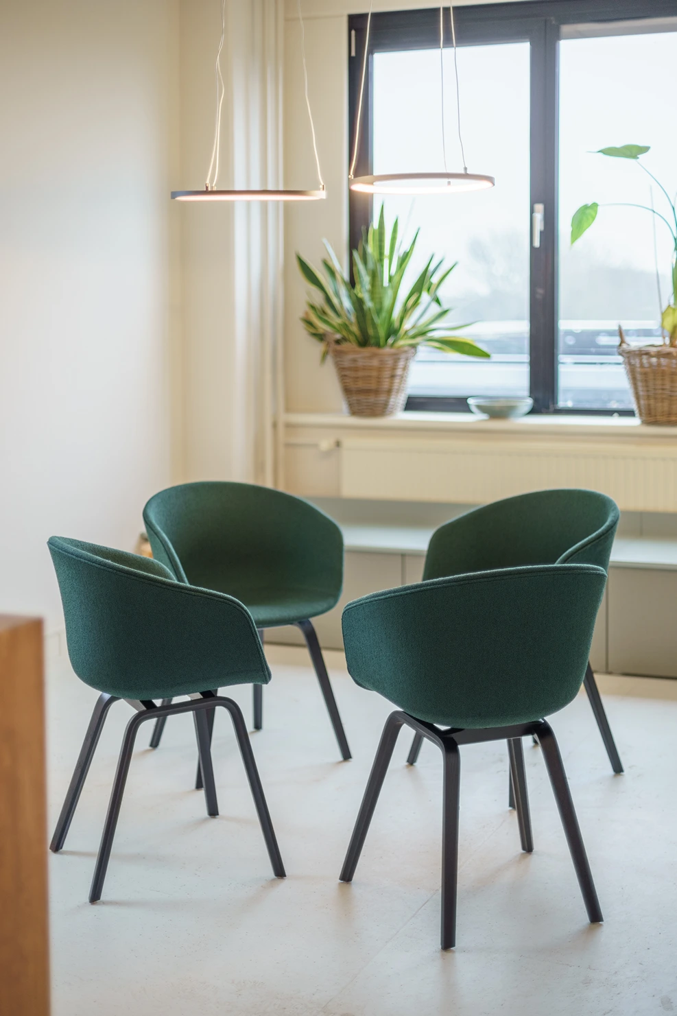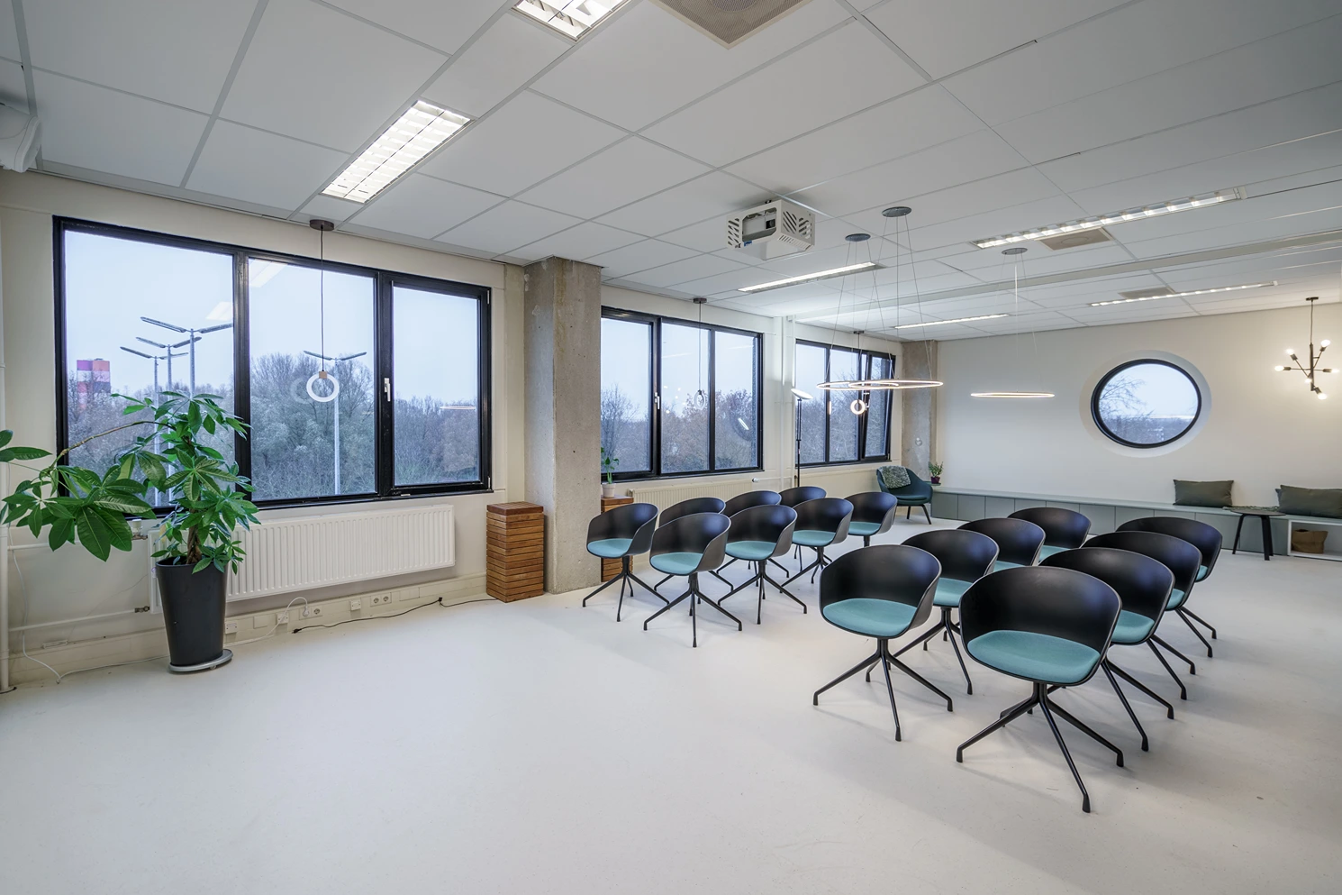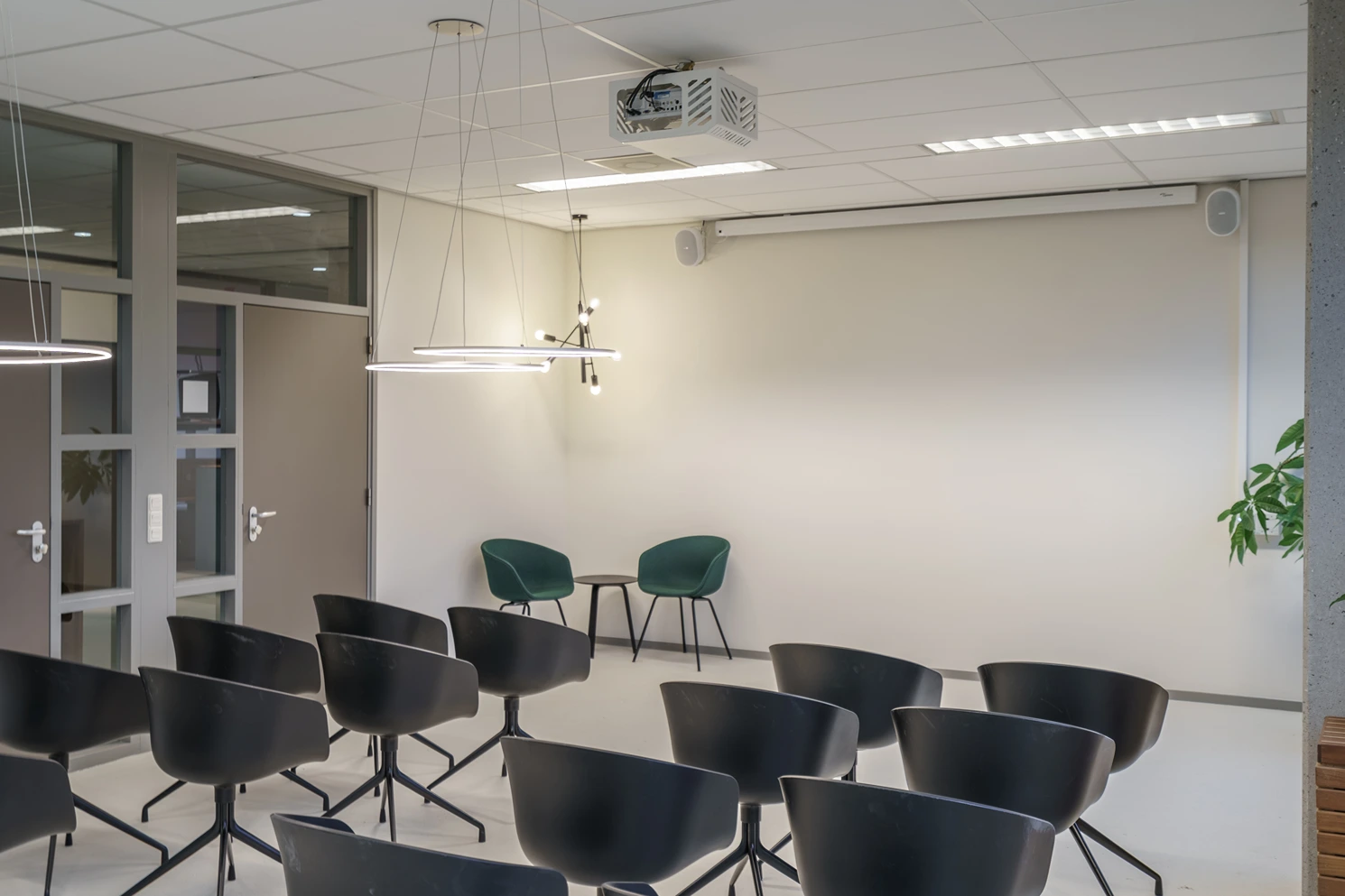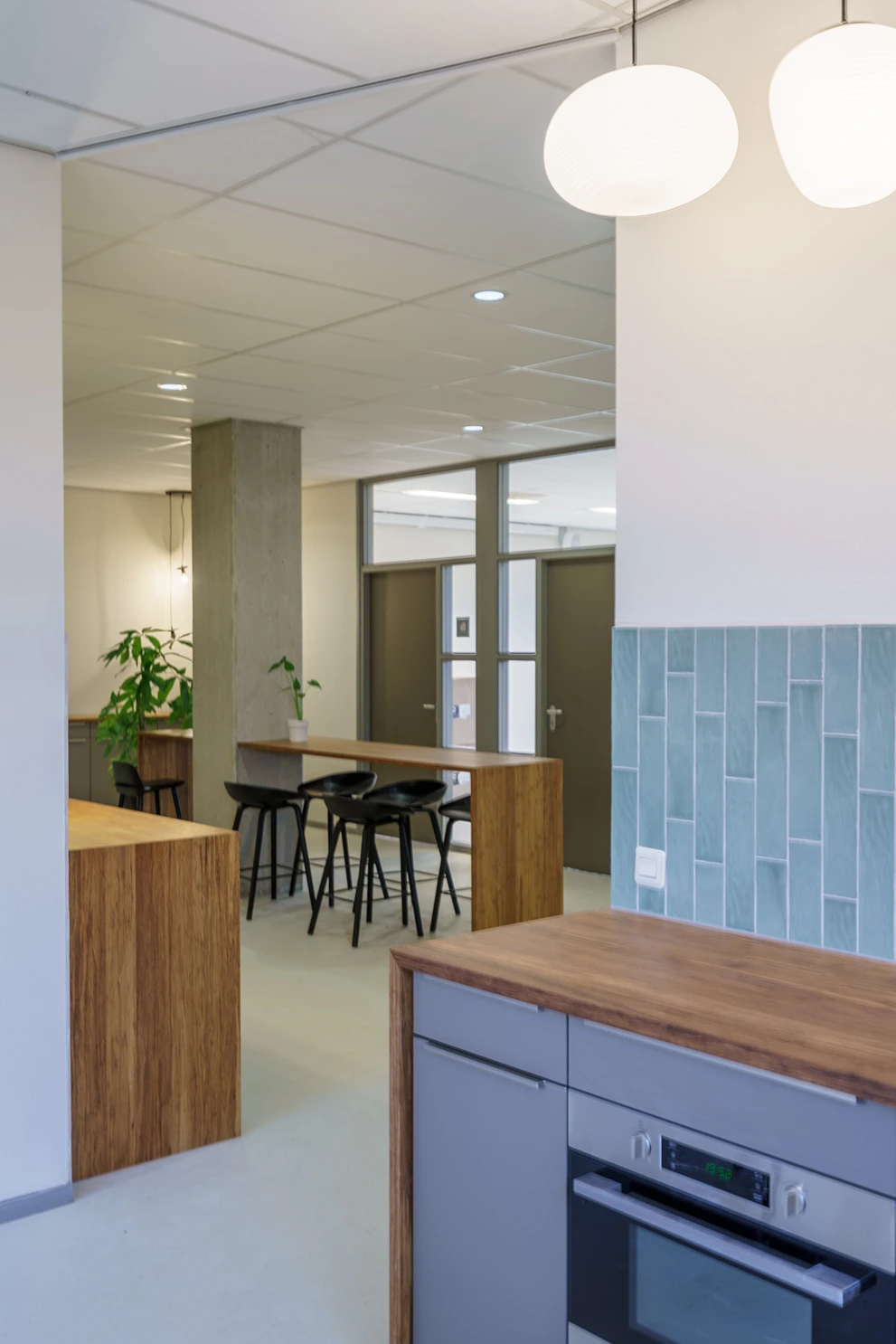 • Afwerking: Hoogwaardige materialen, akoestische plafonds en duurzame vloerbedekking geven het kantoor een frisse uitstraling.