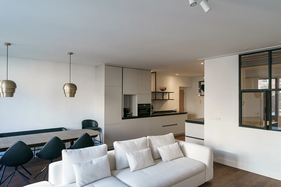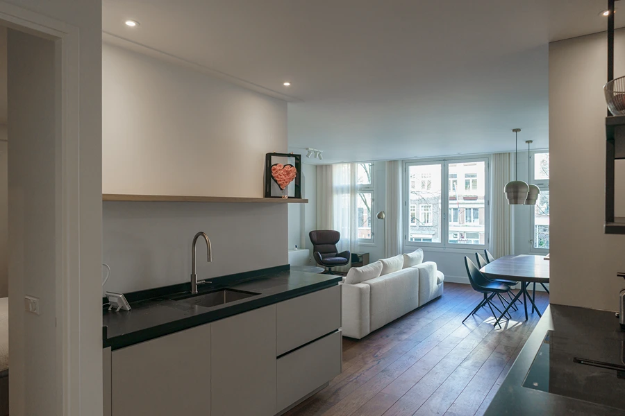 Aan de historische Singel in Amsterdam hebben we een karakteristiek appartement op de gracht getransformeerd tot een moderne, luxueuze woning, waarbij de authentieke charme behouden is gebleven. Dit project illustreert hoe een doordachte renovatie een traditionele woning kan omvormen tot een eigentijdse leefruimte die voldoet aan de hoogste comforteisen.