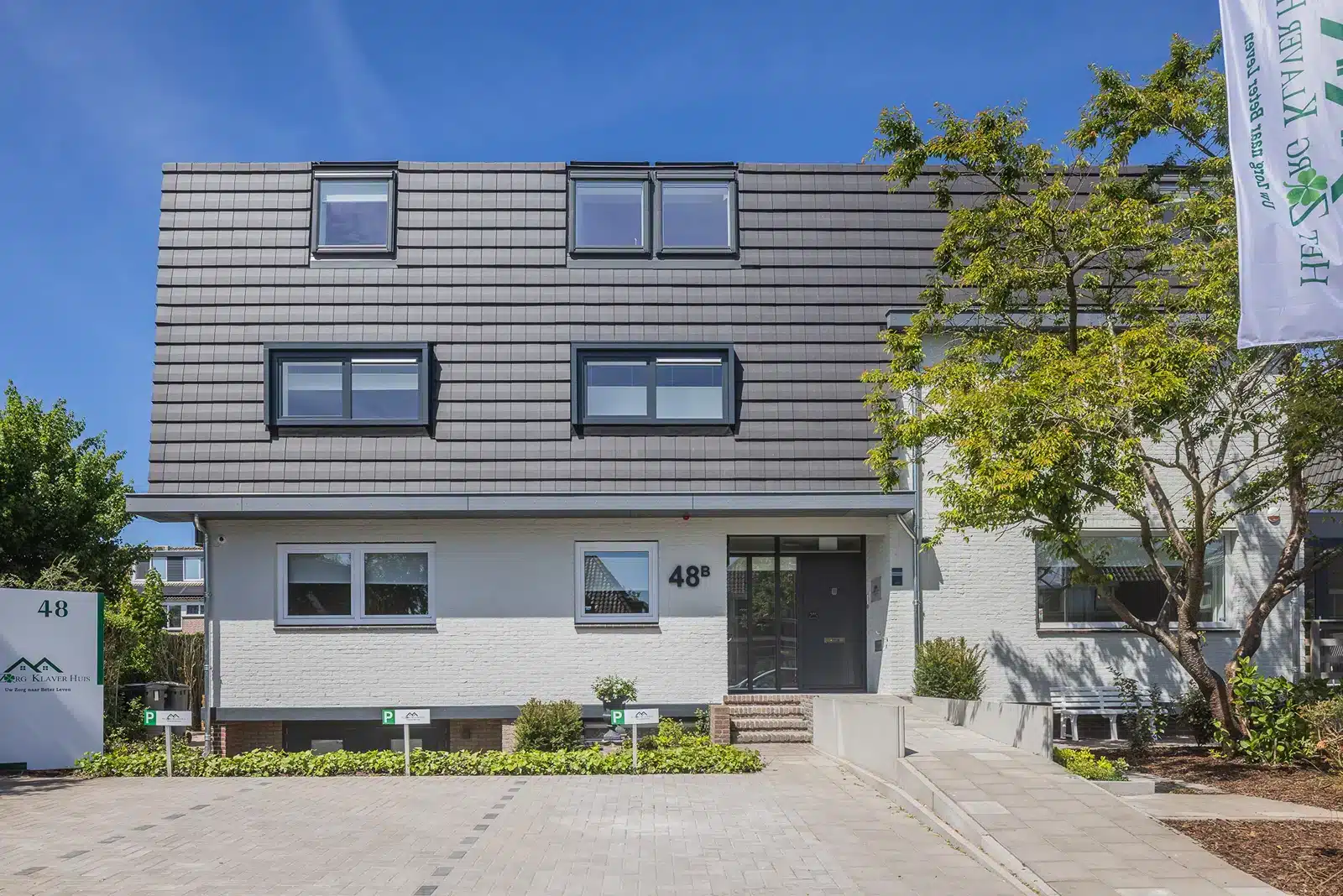 In nauwe samenwerking met Zorgklaver Wonen en Zorg en Format Architecten is een toekomstbestendige zorgomgeving gerealiseerd, waarin comfort, functionaliteit en duurzaamheid centraal staan. De woning beschikt over een grote gezamenlijke woonruimte met keuken, een behandelruimte, een sauna, en een aangename veranda met een royale tuin. Voor extra ondersteuning in de wijk is er ook een wasserette ingericht voor zorgbehoevenden uit de omgeving. Hier kunnen zorgverleners in de omgeving gebruik van maken.